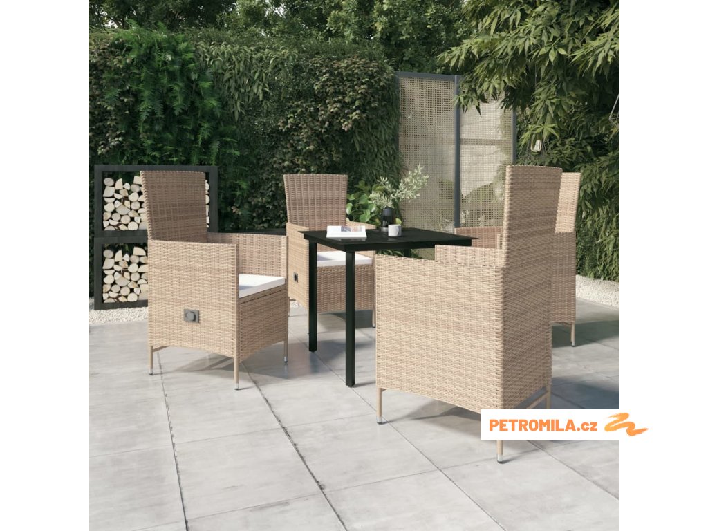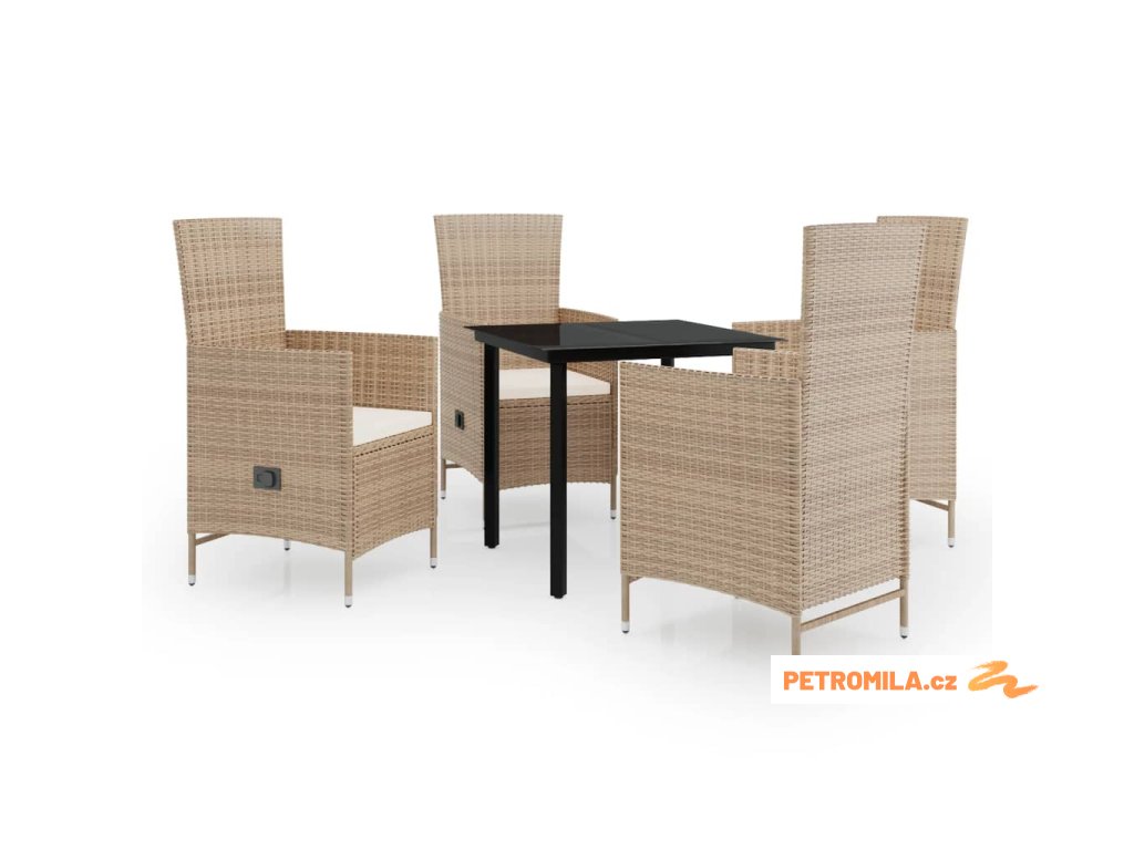 5dílný zahradní jídelní set s poduškami béžový