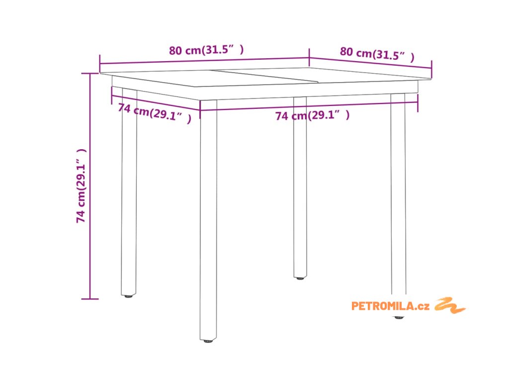 - Rozměry stolu: 80 x 80 x 74 cm (D x Š x V)