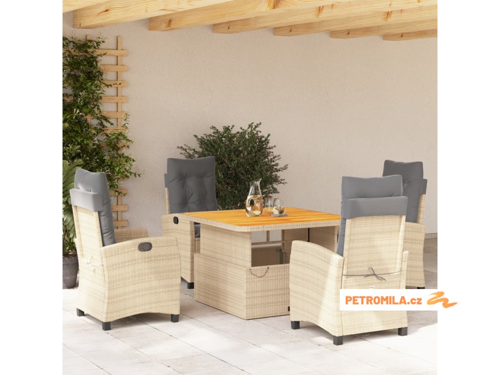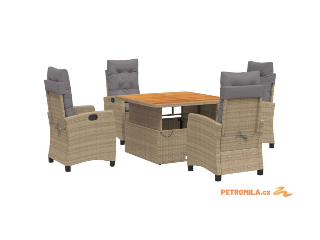5dílný zahradní jídelní set s poduškami béžový polyratan