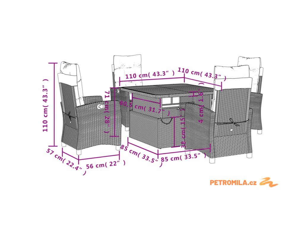 - Rozměry stolku: 110 x 110 x 40/71 cm (D x Š x V)