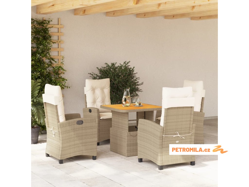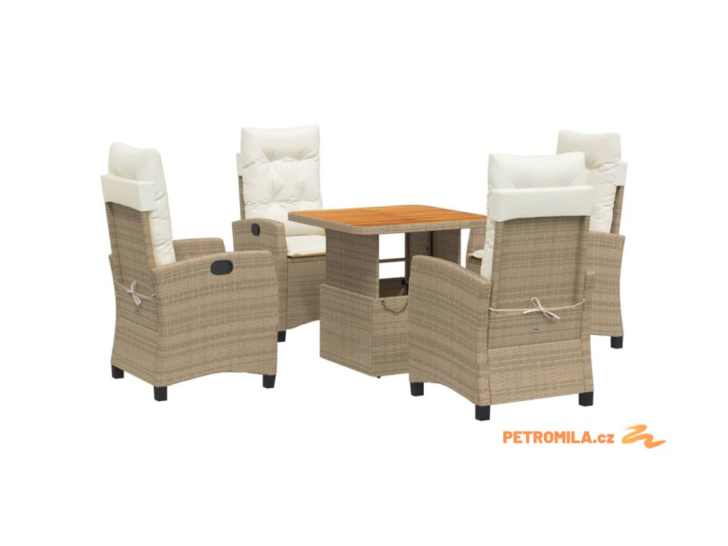 5dílný zahradní jídelní set s poduškami béžový polyratan