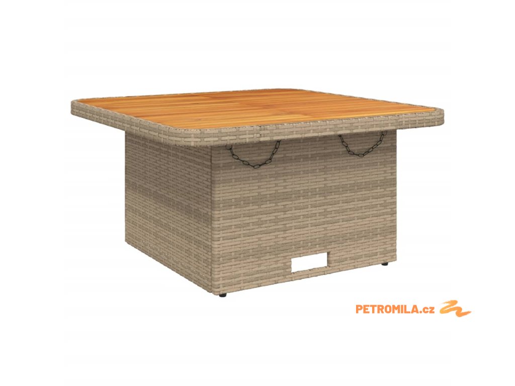- Materiál: PE ratan, práškově lakovaná ocel, masivní akáciové dřevo s olejovou povrchovou úpravou