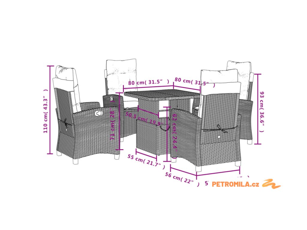 - Rozměry při poloze vsedě: 57 x 66 x 93 cm (Š x H x V)