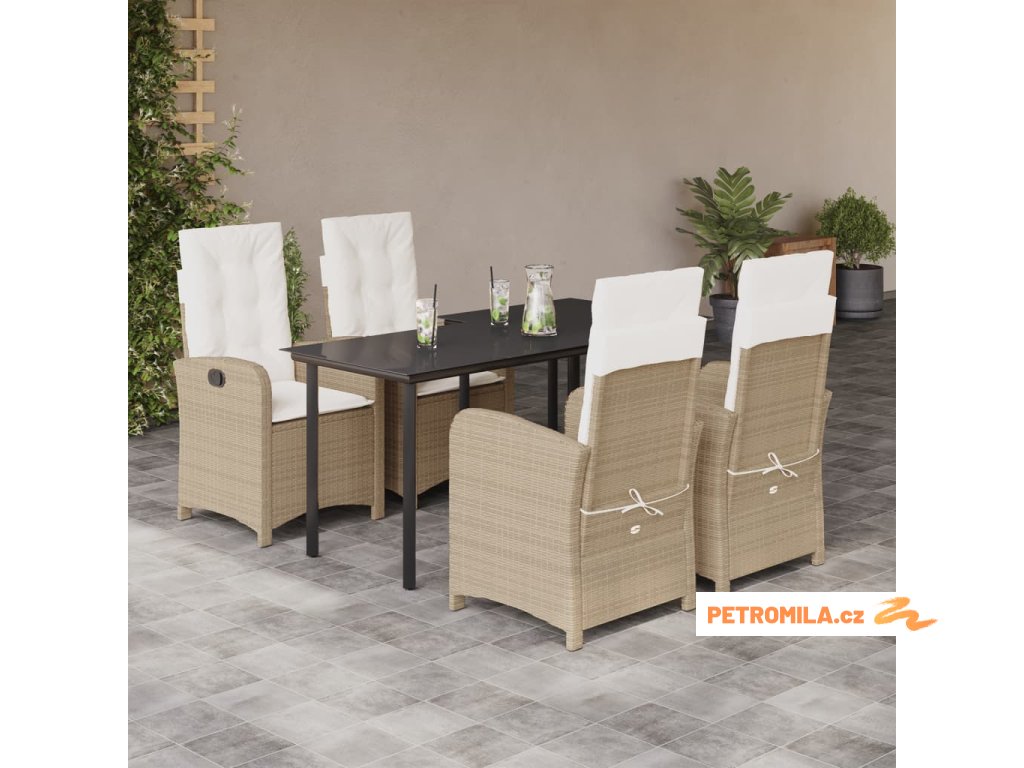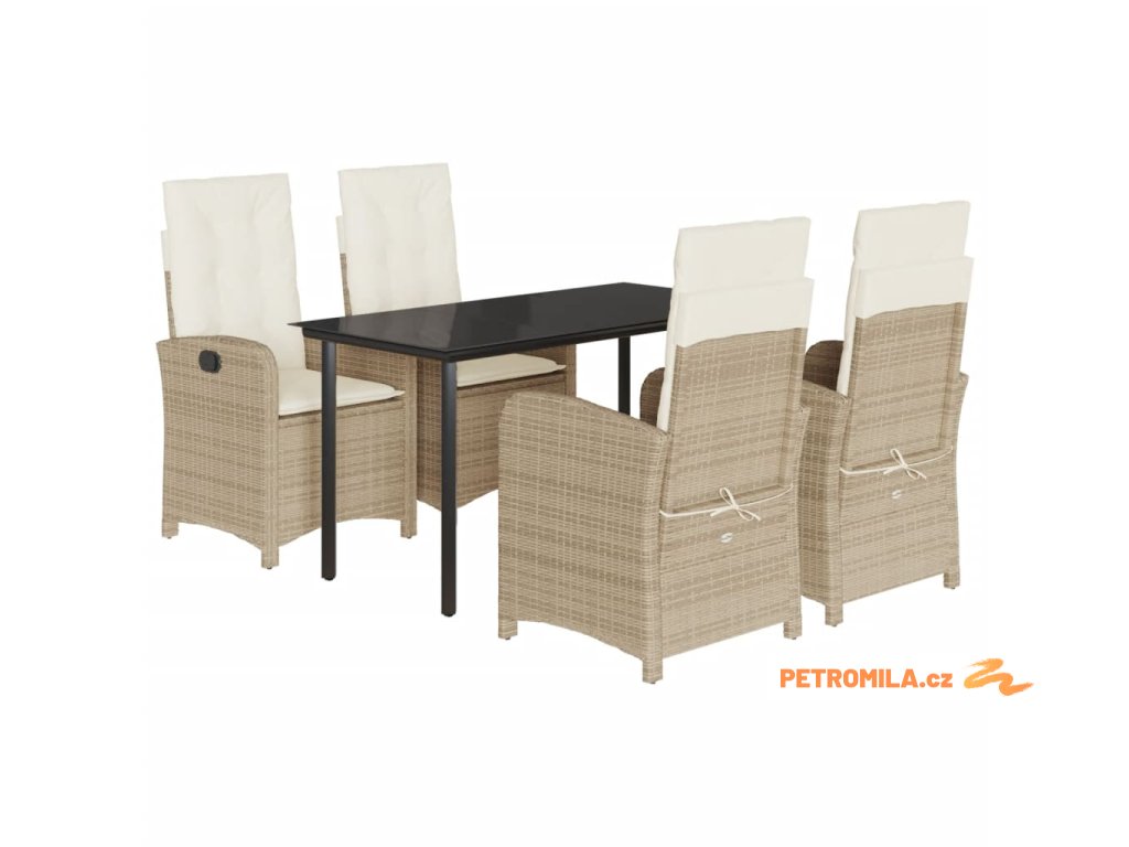 5dílný zahradní jídelní set s poduškami béžový polyratan