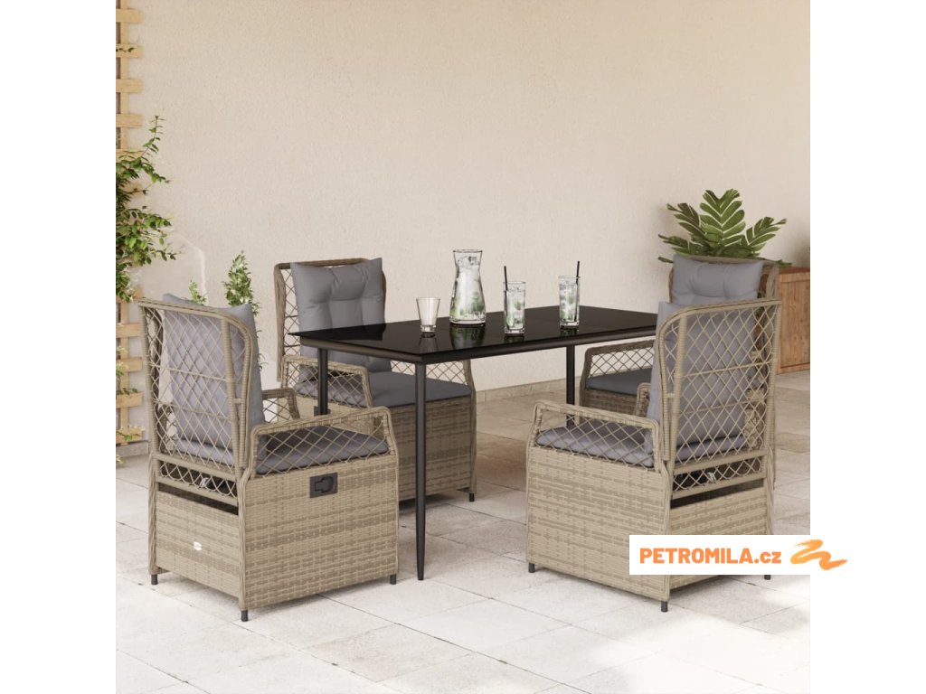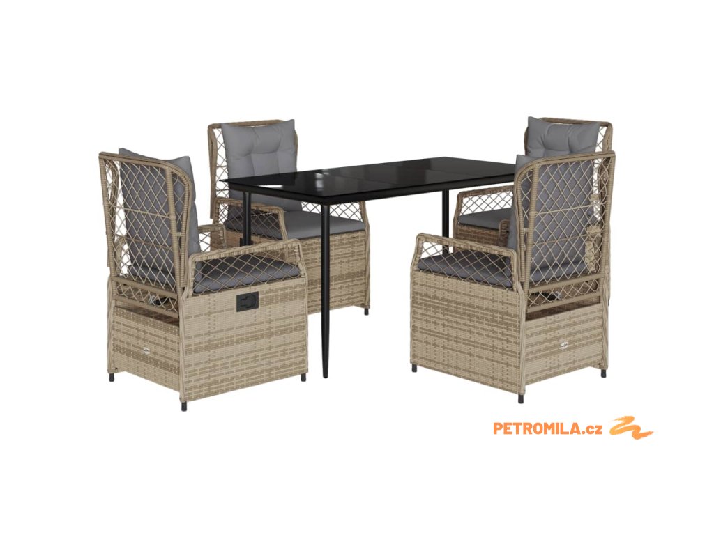 5dílný zahradní jídelní set s poduškami béžový polyratan