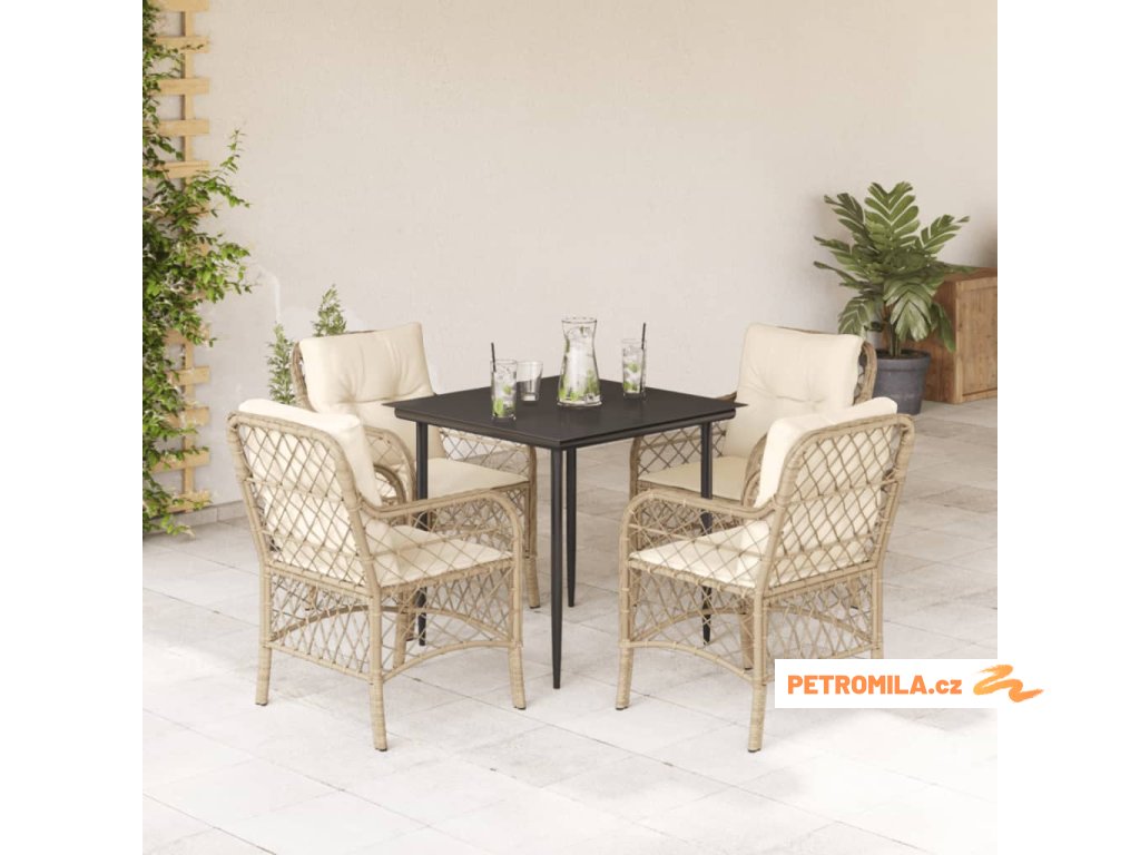 5dílný zahradní jídelní set s poduškami béžový polyratan