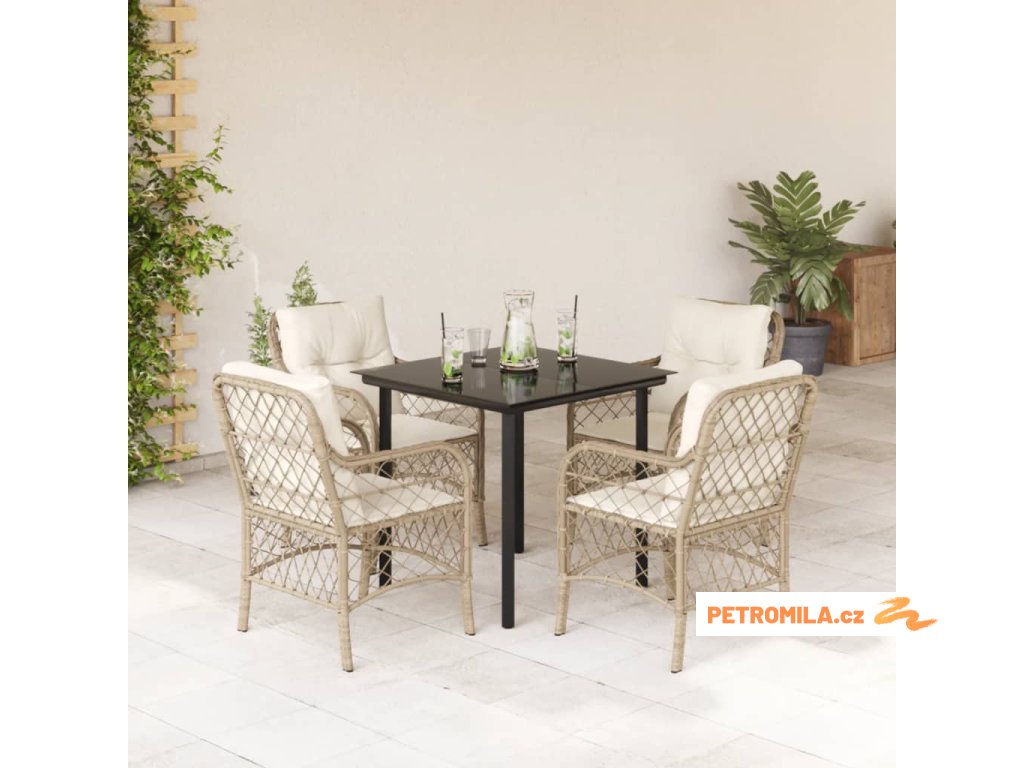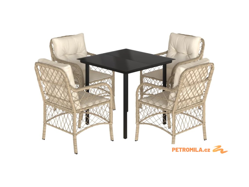 5dílný zahradní jídelní set s poduškami béžový polyratan