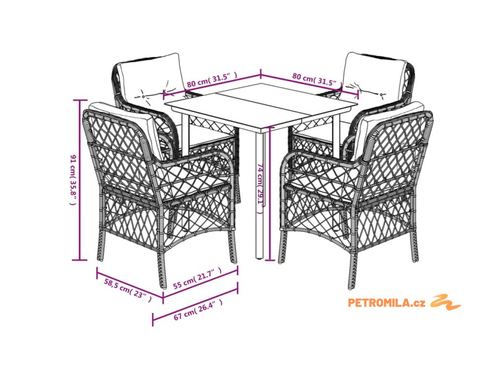 - Rozměry: 80 x 80 x 74 cm (Š x H x V)