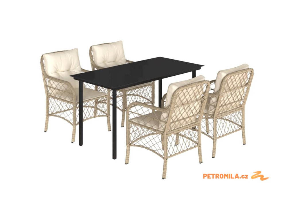 5dílný zahradní jídelní set s poduškami béžový polyratan