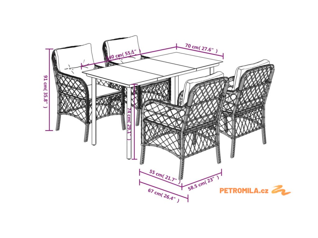 Tento zahradní jídelní set je skvělou volbou pro stolování pod širým nebem nebo jen tak pro odpočívání na zahradě, dvorku či terase.