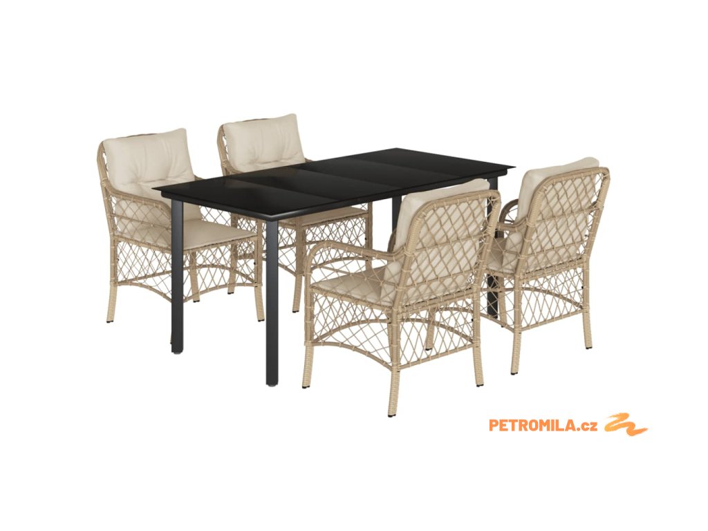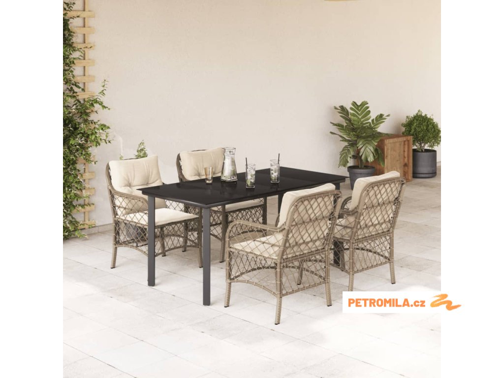 5dílný zahradní jídelní set s poduškami béžový polyratan