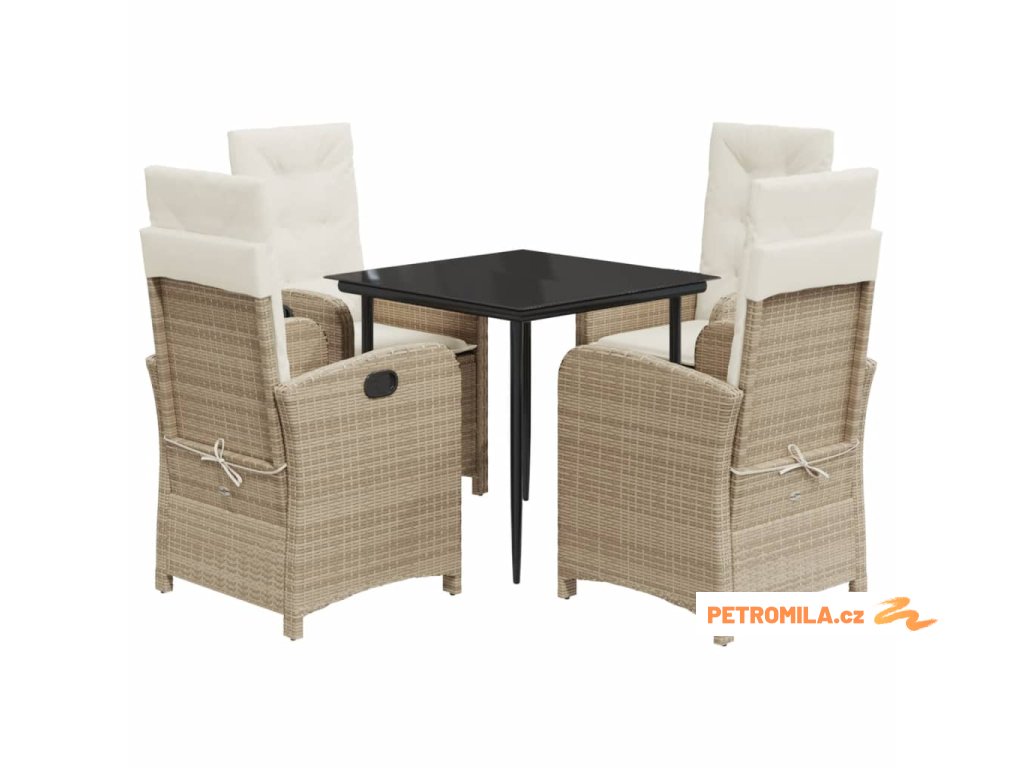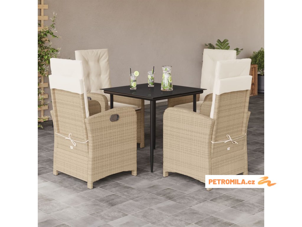 5dílný zahradní jídelní set s poduškami béžový polyratan