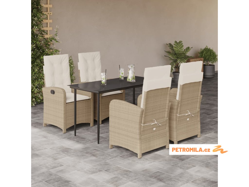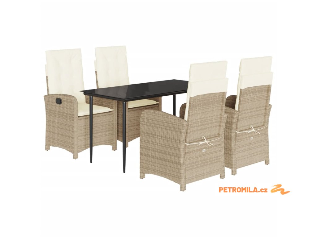 5dílný zahradní jídelní set s poduškami béžový polyratan