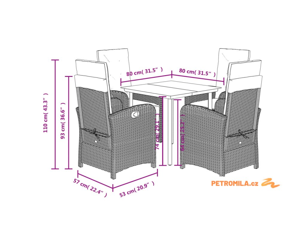 - Rozměry: 80 x 80 x 74 cm (D x Š x V)