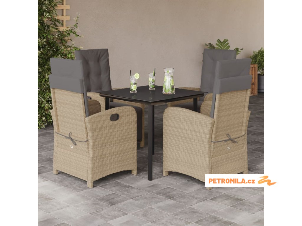 5dílný zahradní jídelní set s poduškami béžový polyratan