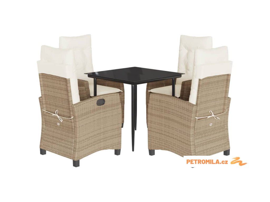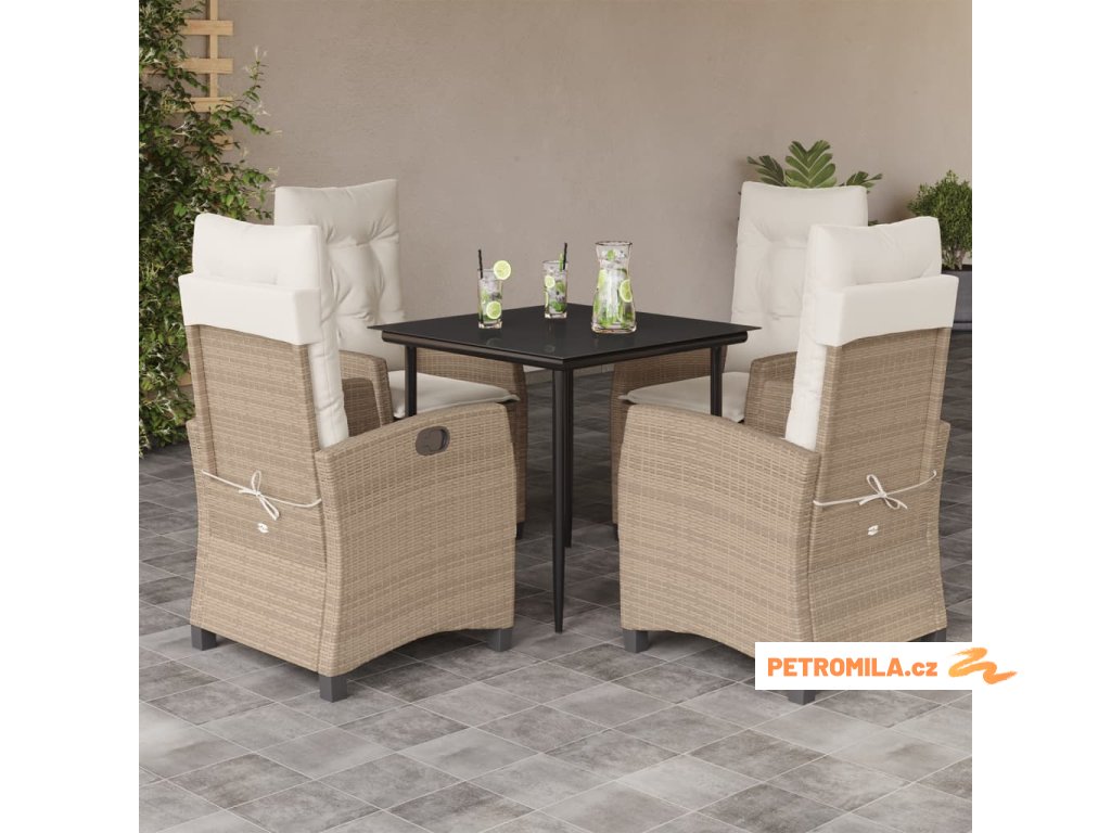 5dílný zahradní jídelní set s poduškami béžový polyratan
