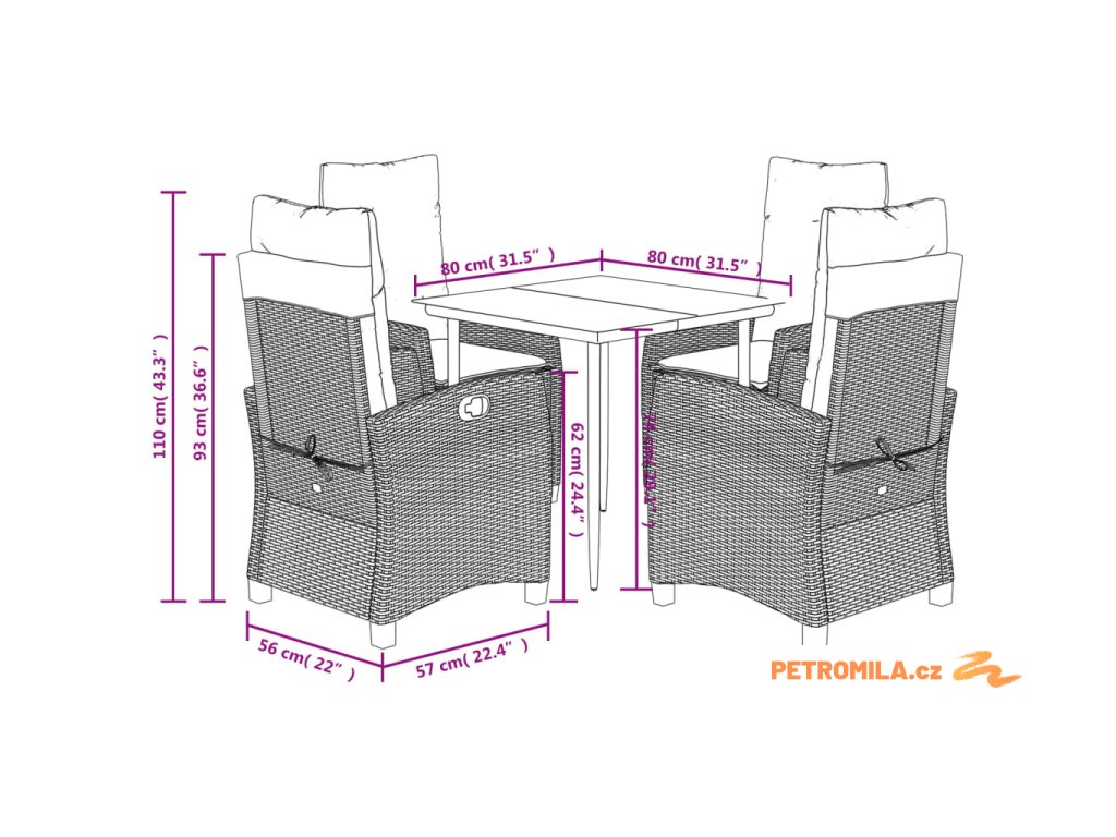 - Rozměry: 80 x 80 x 74 cm (D x Š x V)
