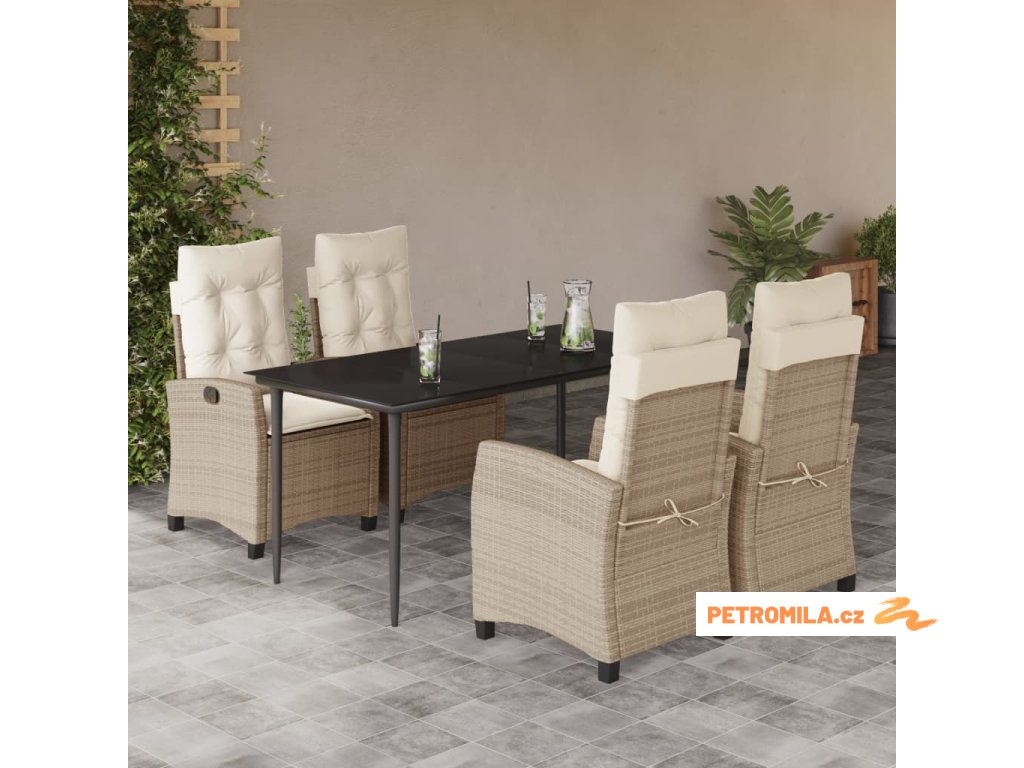 5dílný zahradní jídelní set s poduškami béžový polyratan