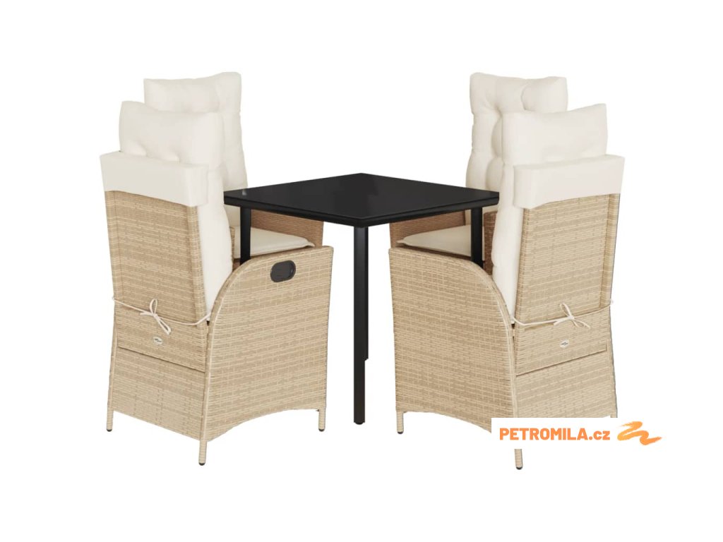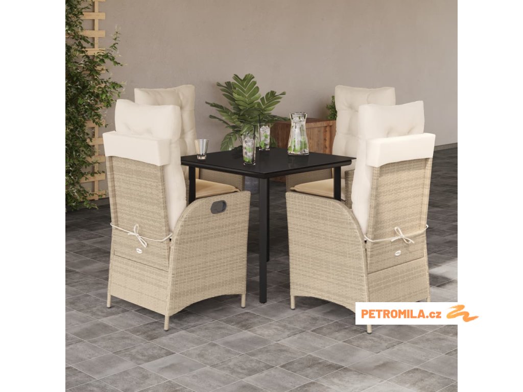 5dílný zahradní jídelní set s poduškami béžový polyratan