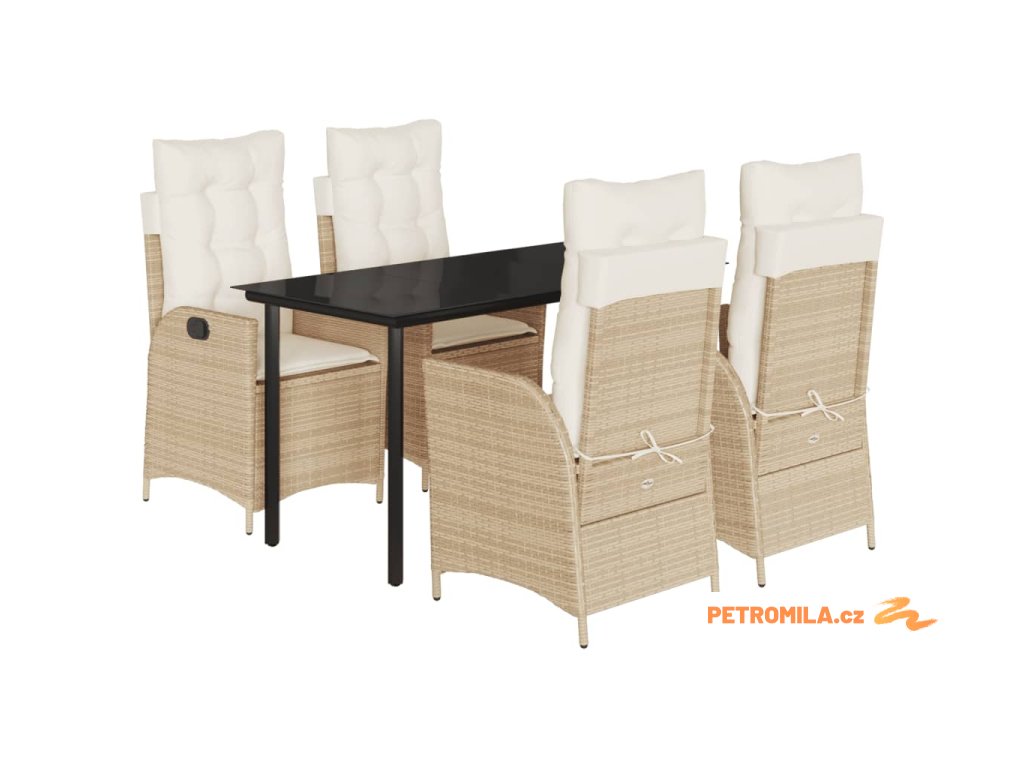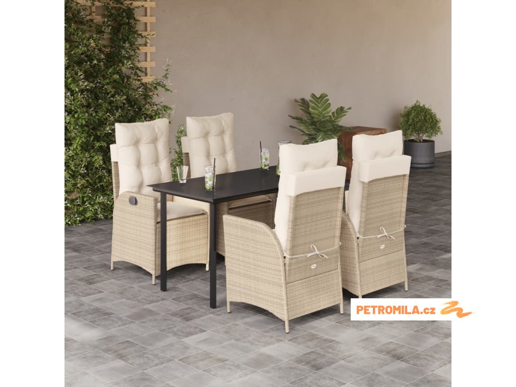 5dílný zahradní jídelní set s poduškami béžový polyratan