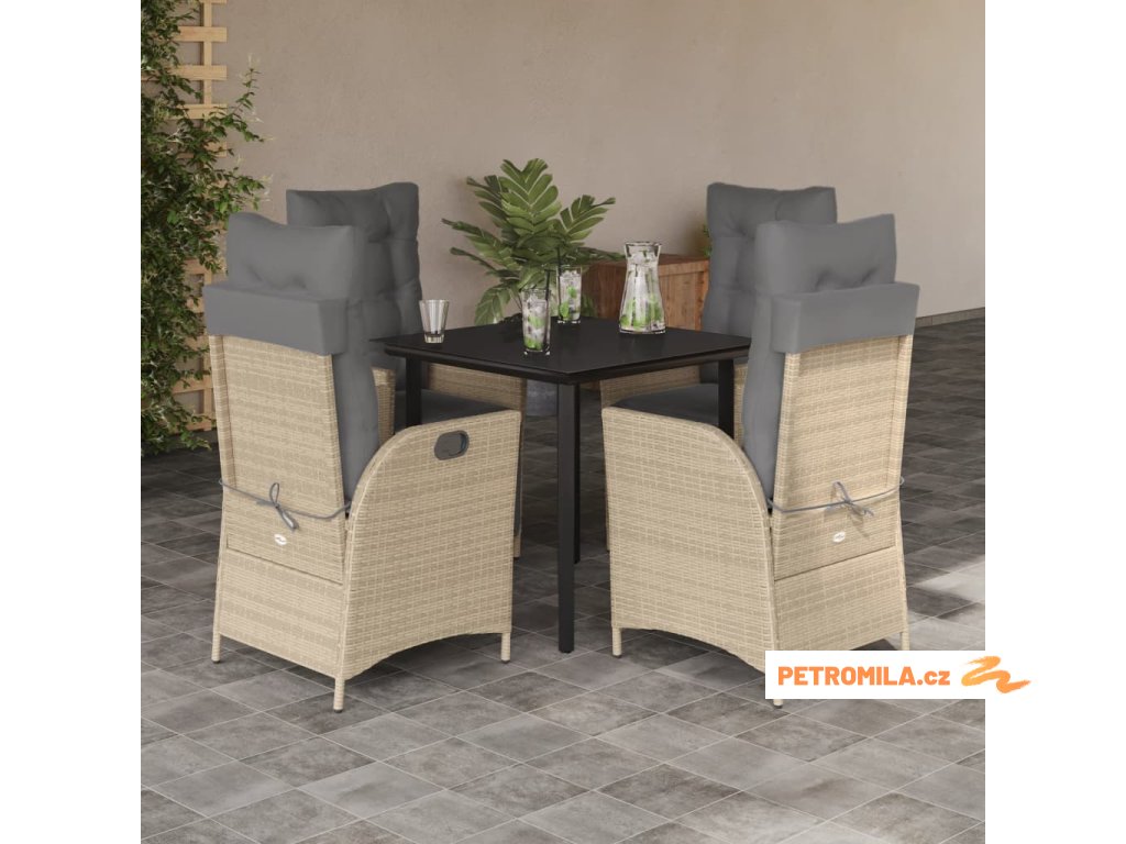 5dílný zahradní jídelní set s poduškami béžový polyratan