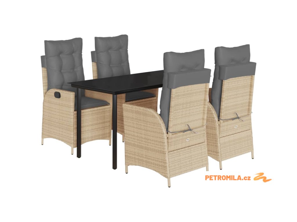 5dílný zahradní jídelní set s poduškami béžový polyratan
