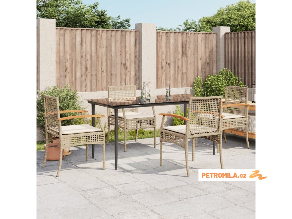 5dílný zahradní jídelní set s poduškami béžový polyratan