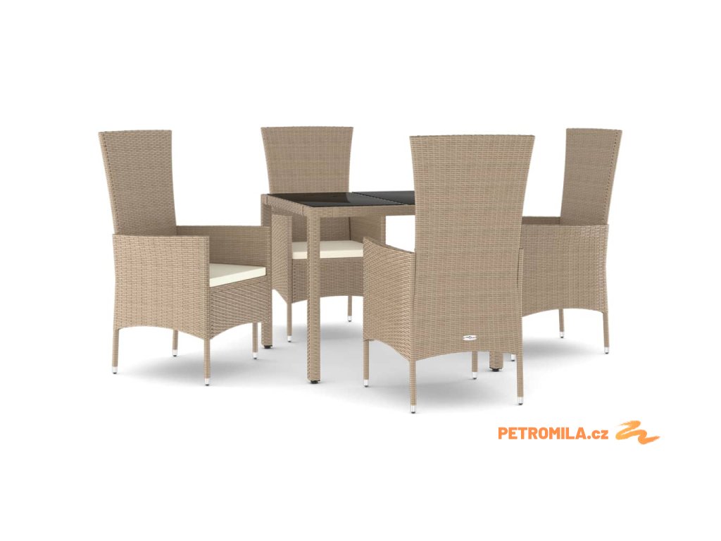 5dílný zahradní jídelní set s poduškami béžový polyratan