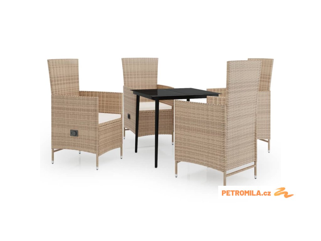 Stůl i židle mají rámy z práškově lakované oceli, jsou tedy robustní, stabilní a vhodné pro každodenní venkovní použití. Židle jsou vyrobené z voděodolného PE ratanu, takže se snadno čistí a hodně toho vydrží. Opěradlo si můžete nastavit stisknutím tlačítka na boku. Nábytek má lehkou konstrukci, lze ho tudíž bez námahy přesouvat. Husté polstrované podušky na sedák vám navíc zajistí mimořádné pohodlí. Jejich polyesterové potahy jsou nenáročné na údržbu a dají se stáhnout a vyprat. Hladká skleněná stolní deska, kterou jednoduše očistíte vlhkým hadříkem, je ideální k podávání jídla a pití nebo k vystavení různých dekorativních předmětů.