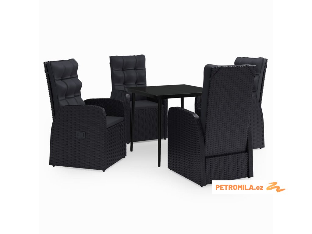 5dílný zahradní jídelní set s poduškami černý