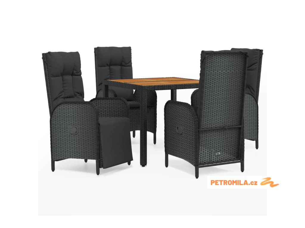 5dílný zahradní jídelní set s poduškami černý polyratan