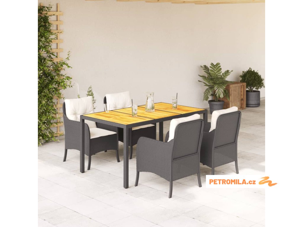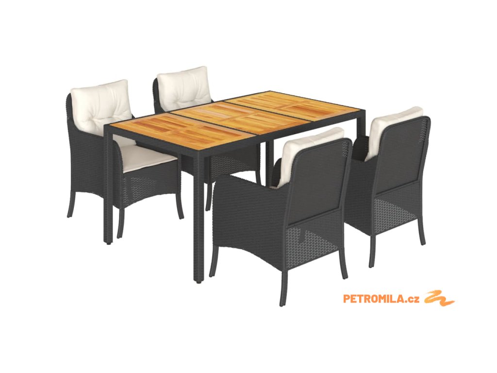 5dílný zahradní jídelní set s poduškami černý polyratan