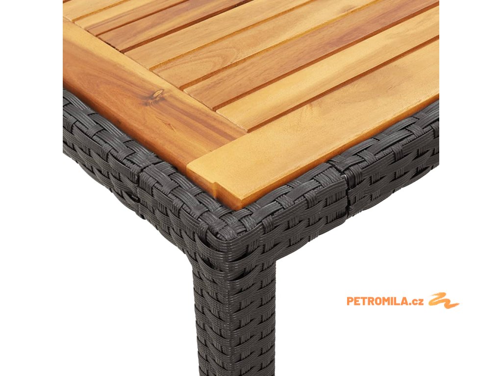 - Materiál: PE ratan, práškově lakovaná ocel, masivní akáciové dřevo s olejovou povrchovou úpravou