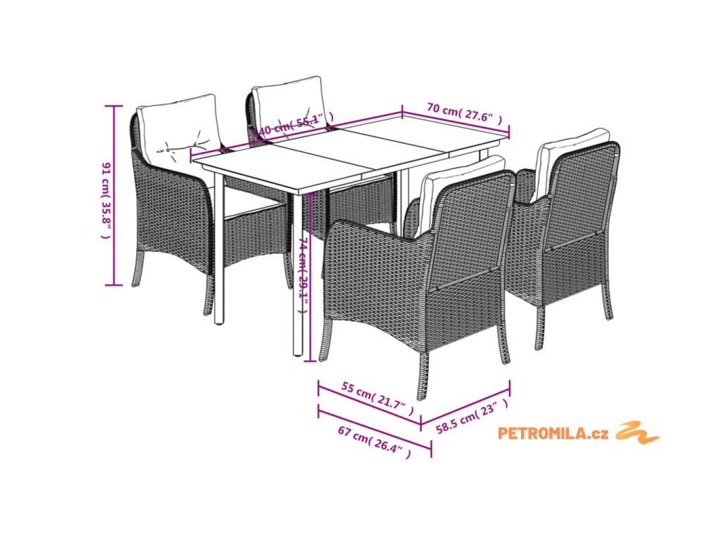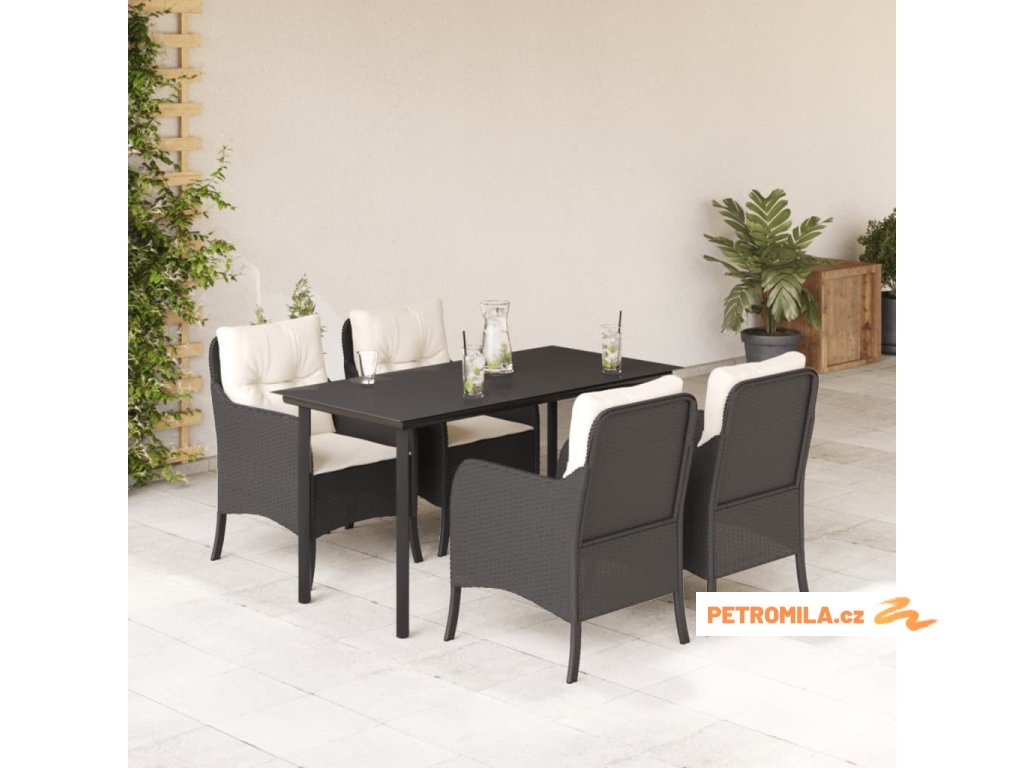 5dílný zahradní jídelní set s poduškami černý polyratan