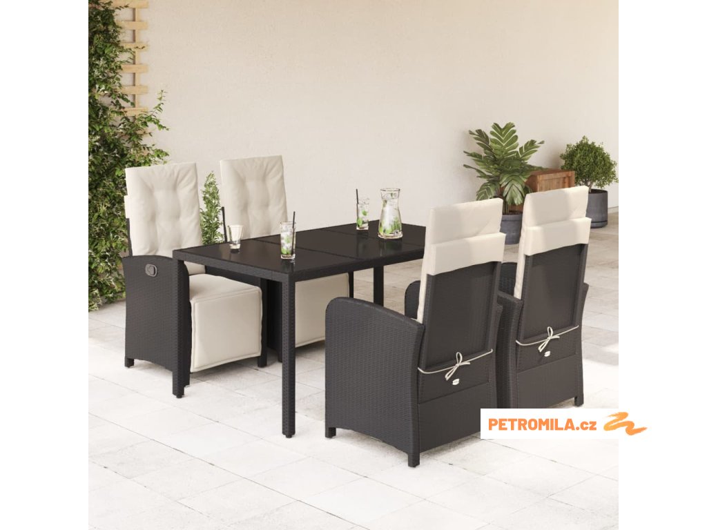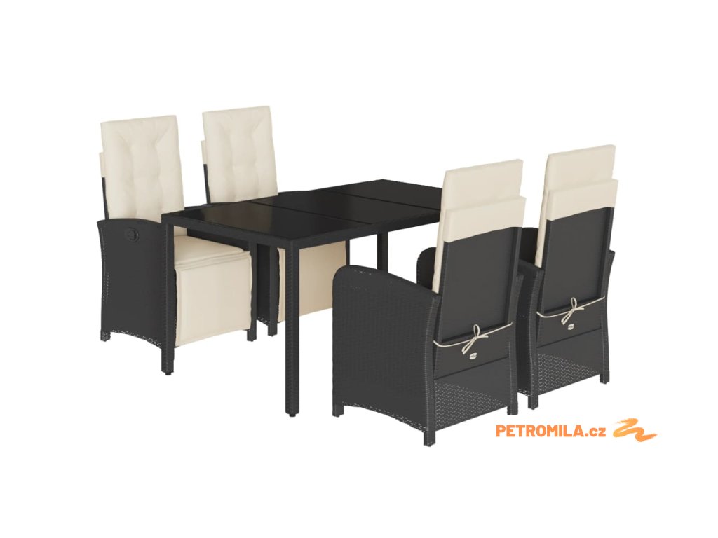5dílný zahradní jídelní set s poduškami černý polyratan