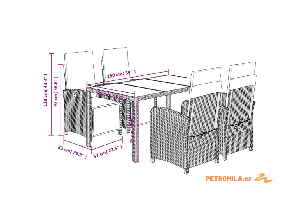 - Rozměry při poloze vsedě: 57 x 60 x 93/110 cm (Š x H x V)