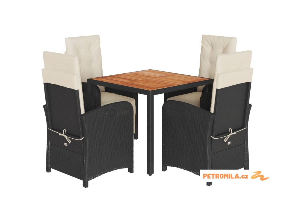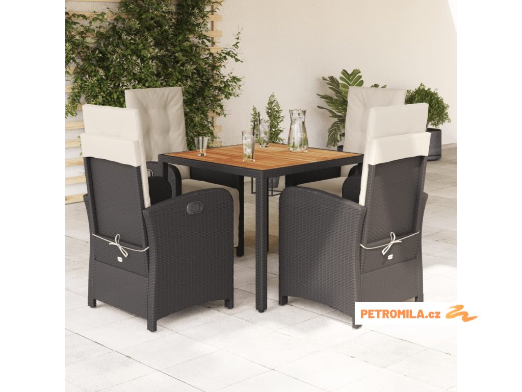 5dílný zahradní jídelní set s poduškami černý polyratan