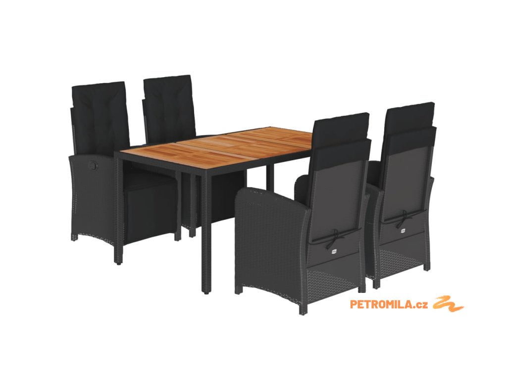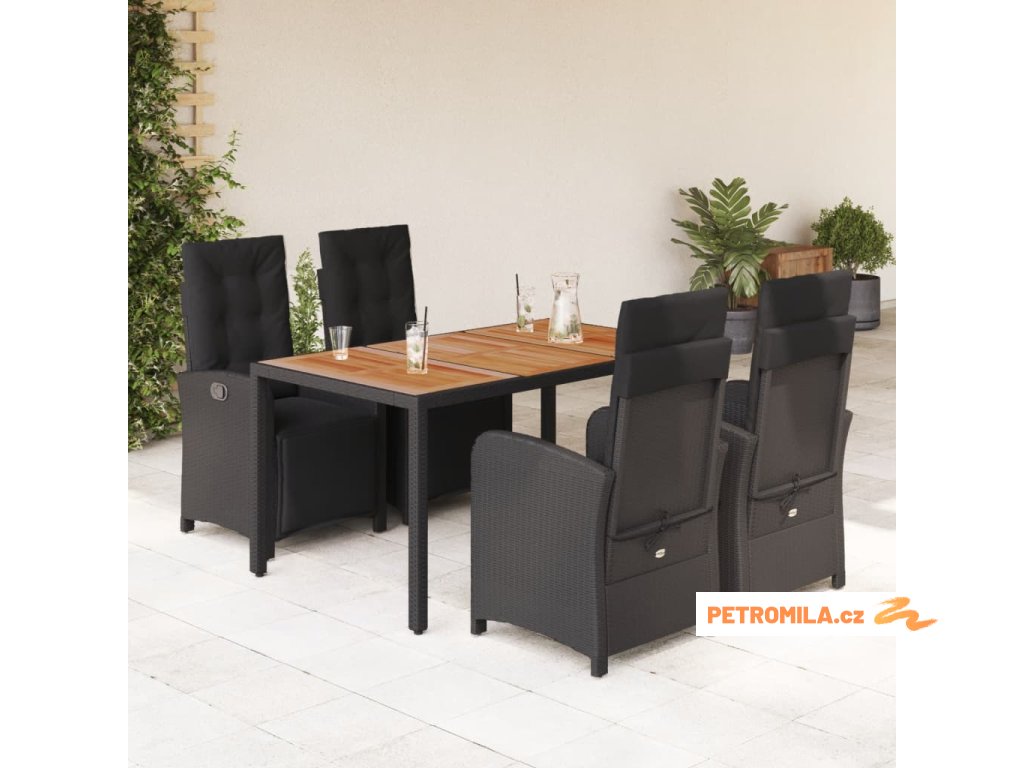 5dílný zahradní jídelní set s poduškami černý polyratan