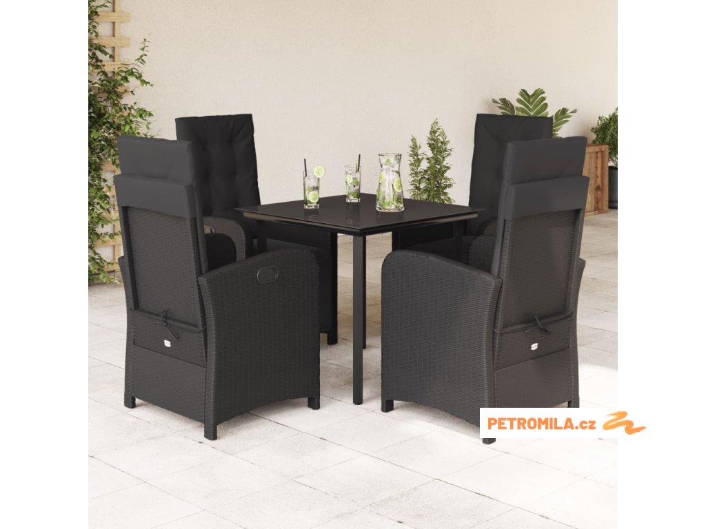 5dílný zahradní jídelní set s poduškami černý polyratan