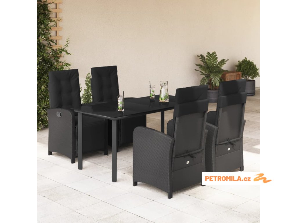 5dílný zahradní jídelní set s poduškami černý polyratan