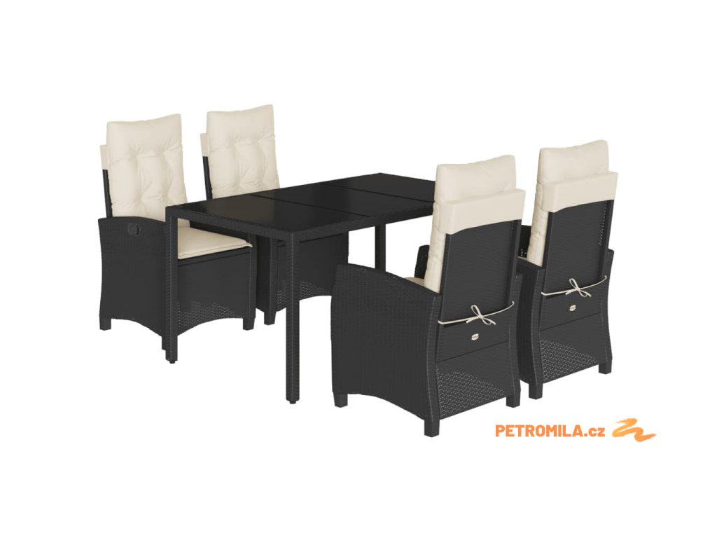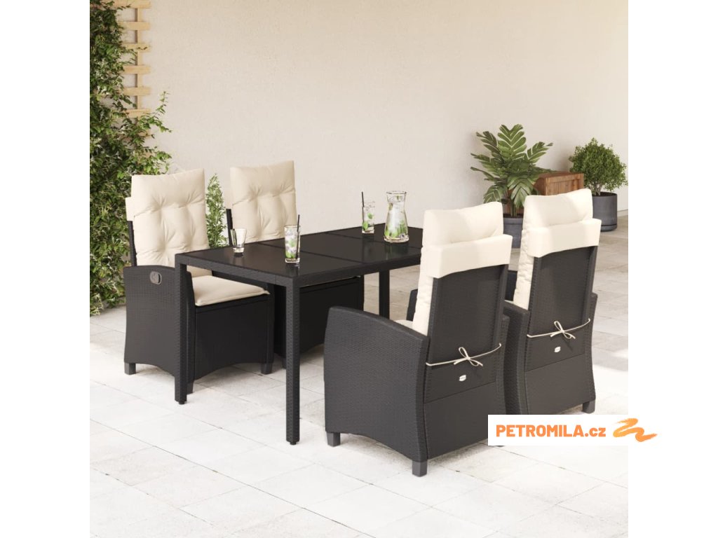 5dílný zahradní jídelní set s poduškami černý polyratan