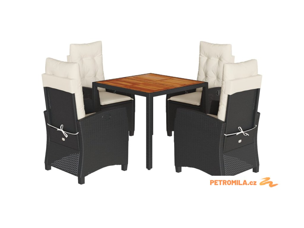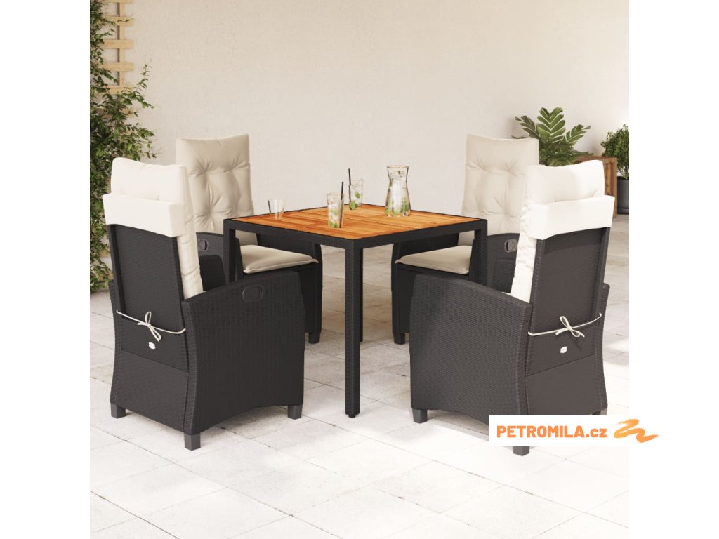 5dílný zahradní jídelní set s poduškami černý polyratan