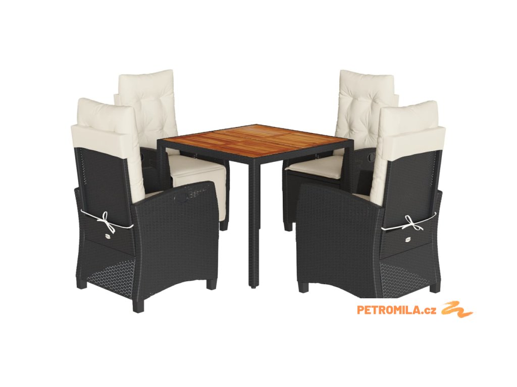 5dílný zahradní jídelní set s poduškami černý polyratan