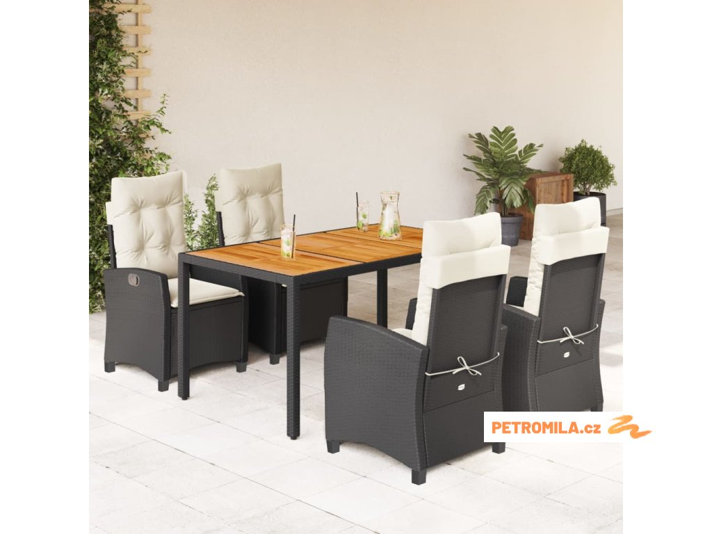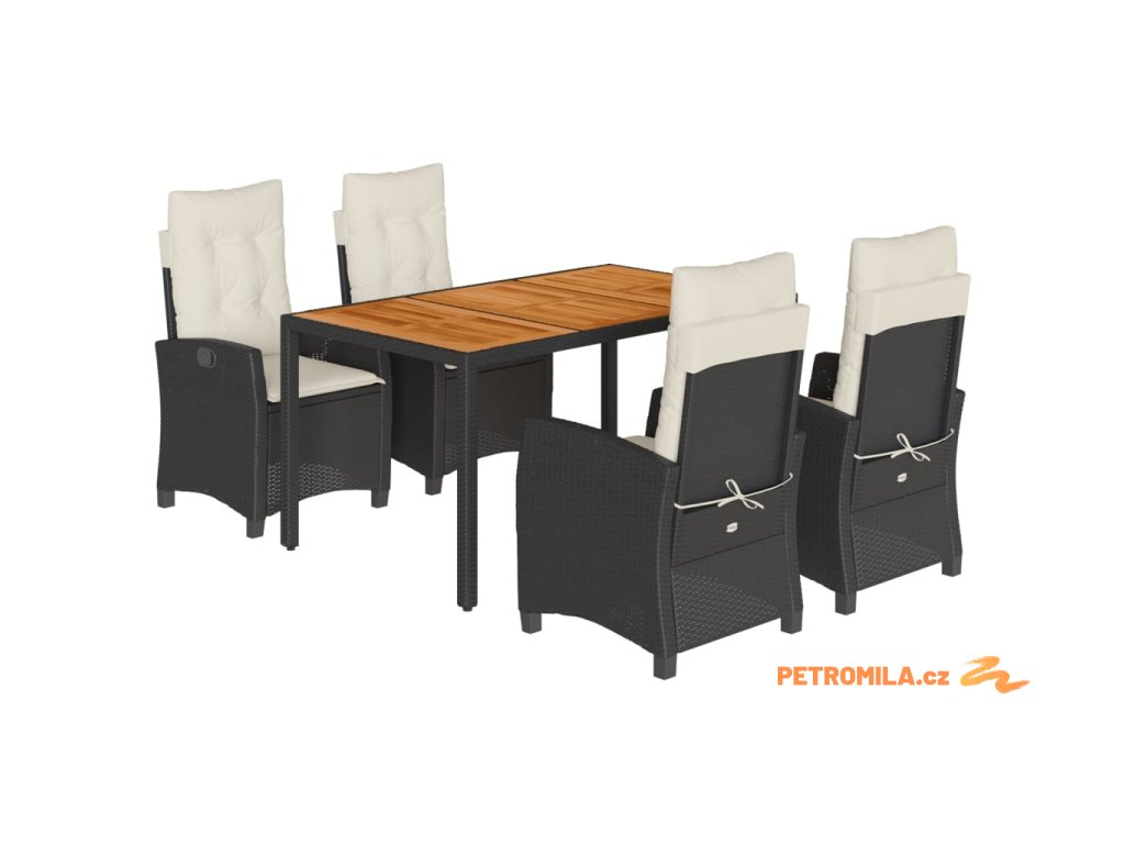 5dílný zahradní jídelní set s poduškami černý polyratan