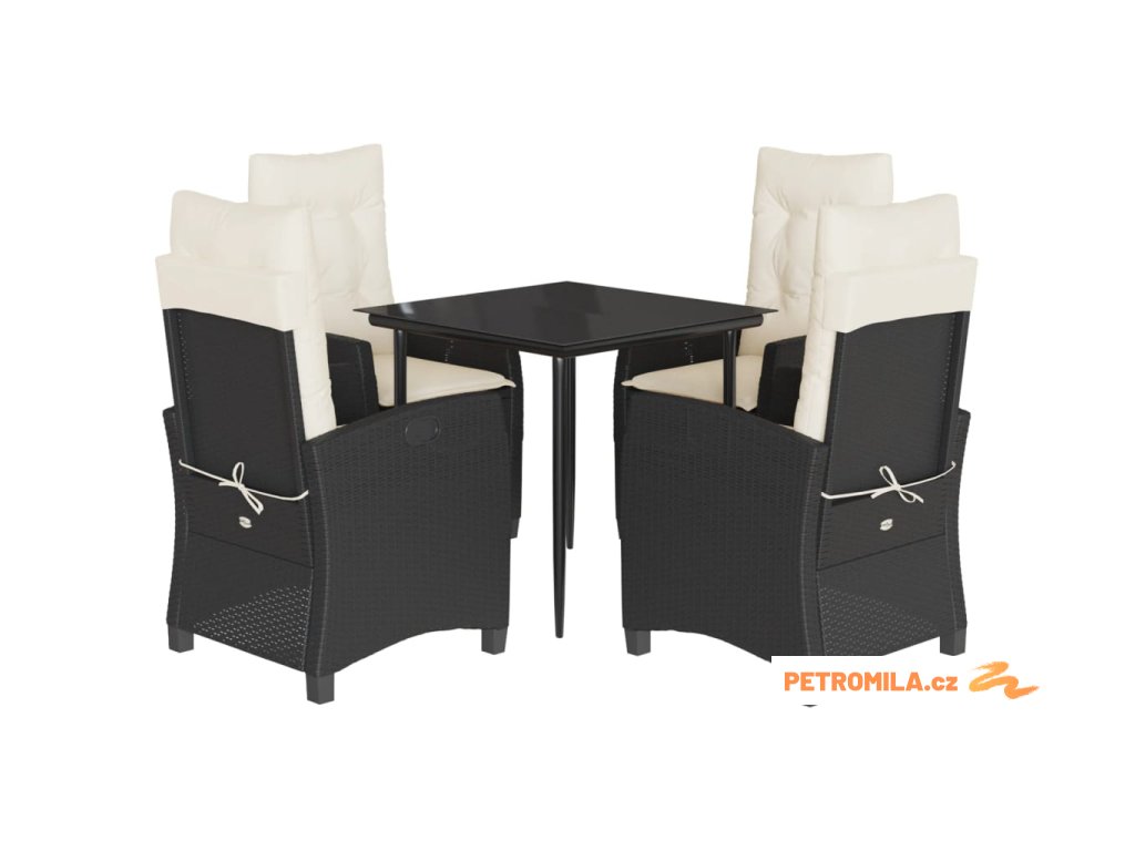5dílný zahradní jídelní set s poduškami černý polyratan