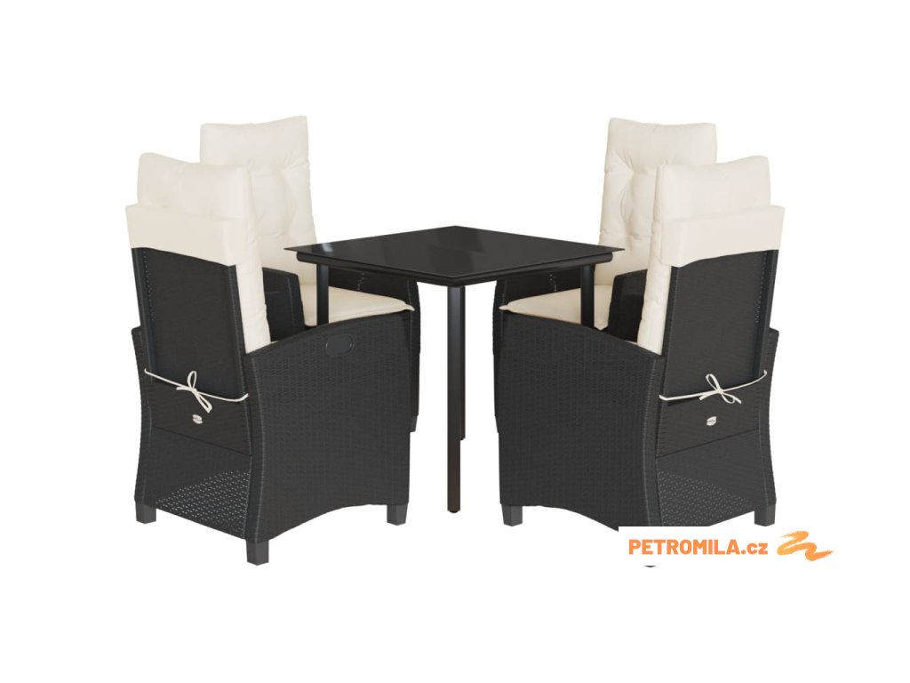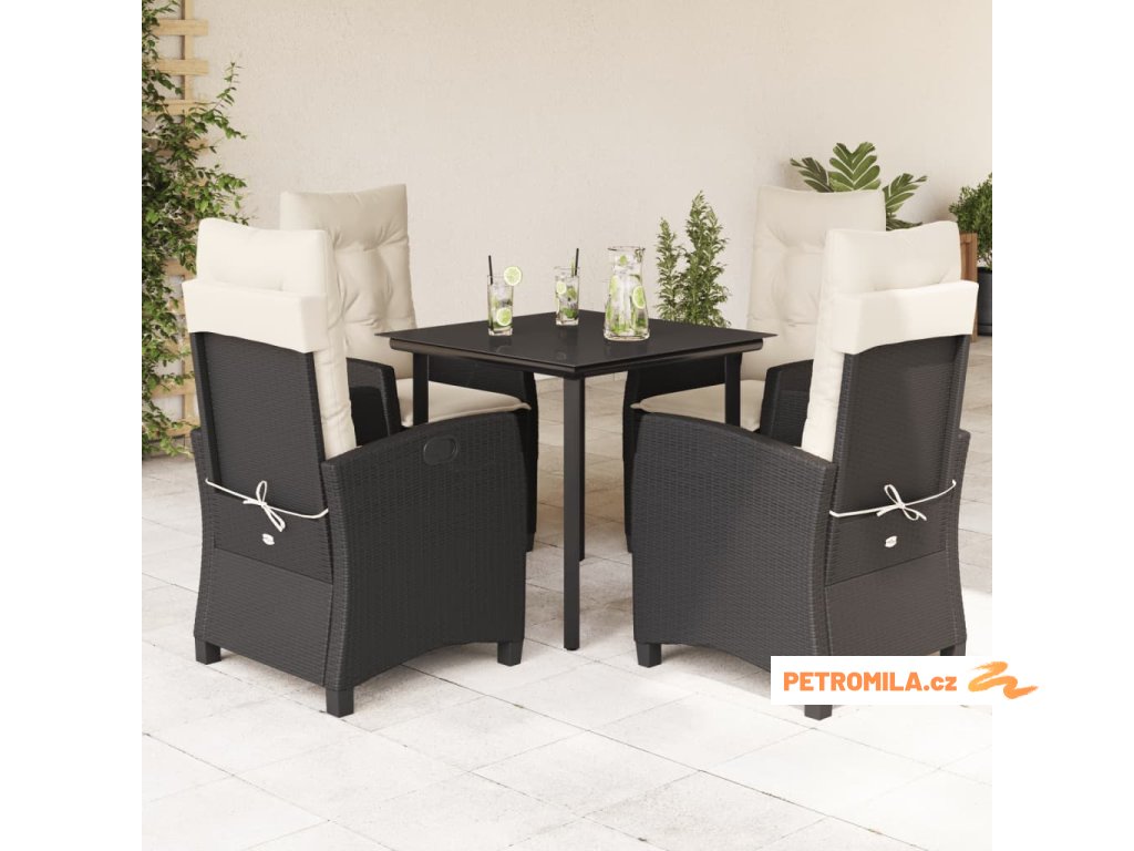 5dílný zahradní jídelní set s poduškami černý polyratan