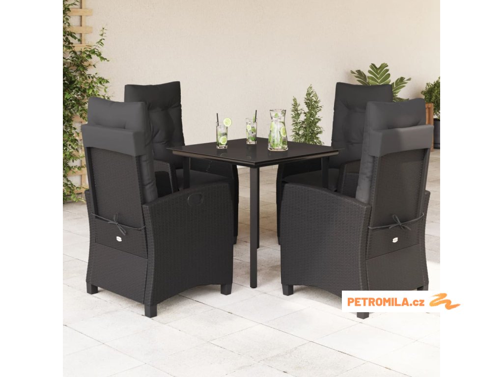 5dílný zahradní jídelní set s poduškami černý polyratan