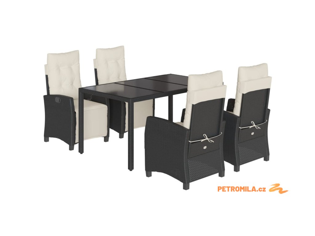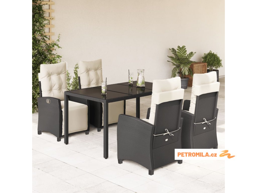 5dílný zahradní jídelní set s poduškami černý polyratan