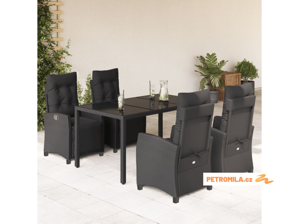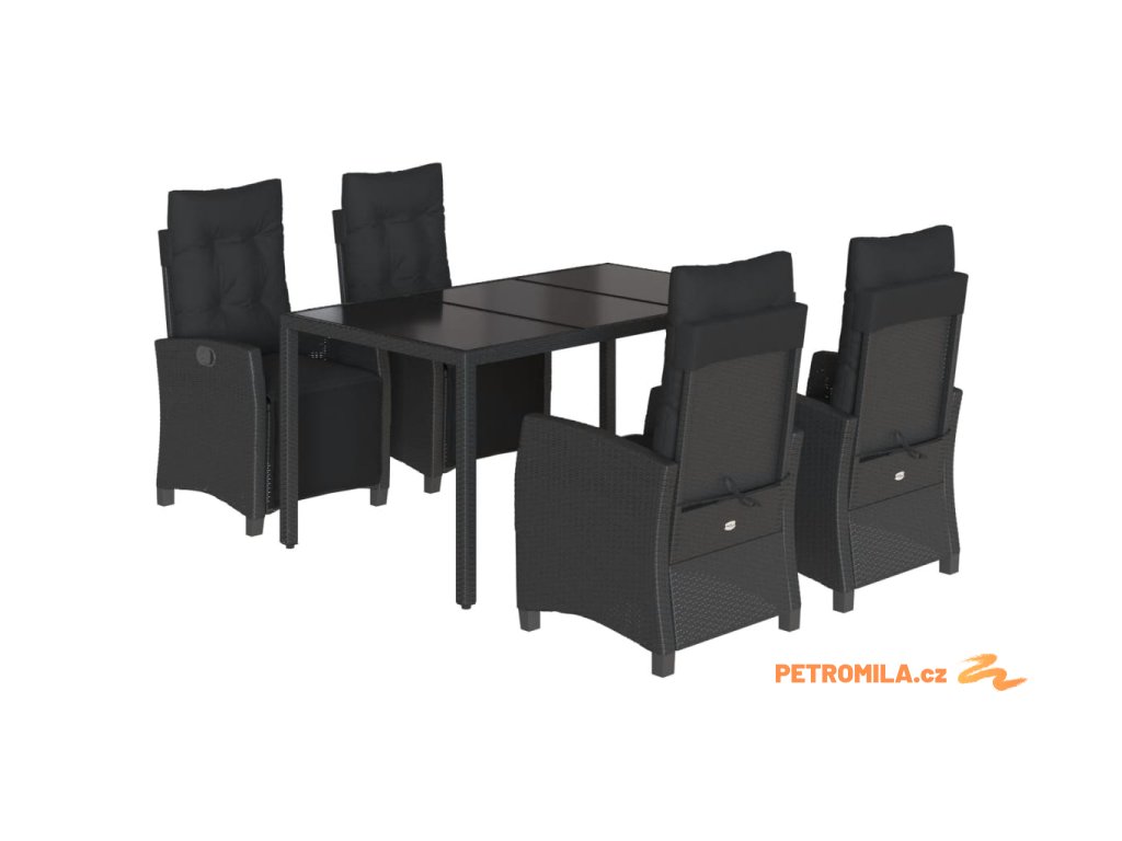 5dílný zahradní jídelní set s poduškami černý polyratan