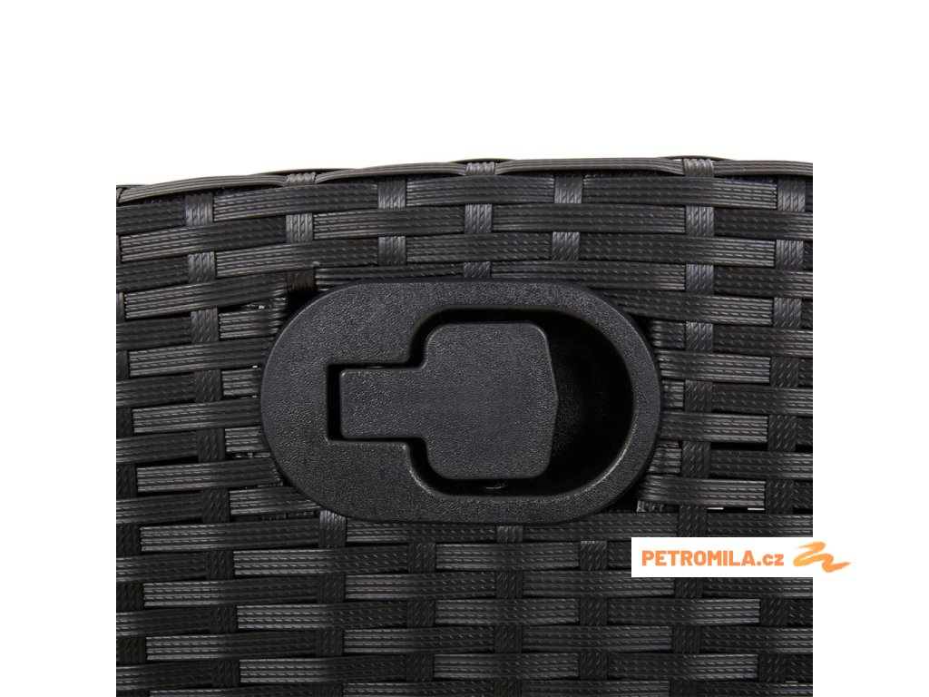 - Materiál: PE ratan, práškově lakovaná ocel, tvrzené sklo